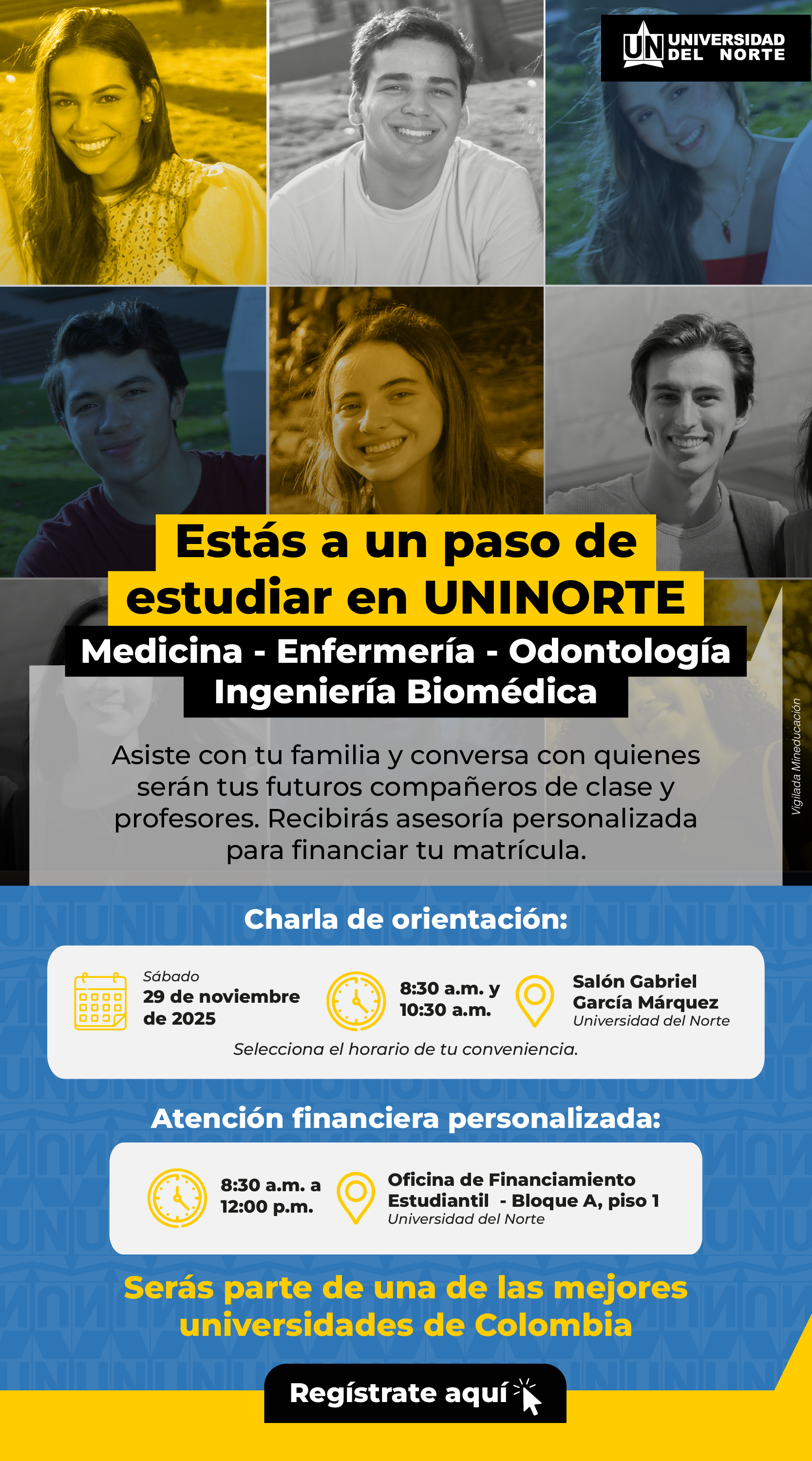 Asiste con tu familia y conversa con quienes serán tus futuros compañeros de clase y profesores. Recibe asesoría personalizada para financiar tu matrícula