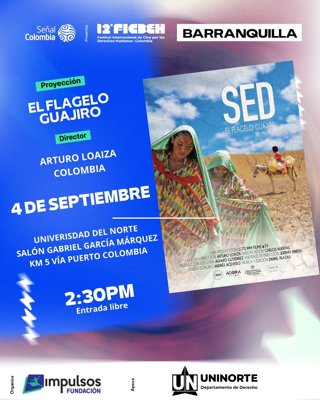 Después de la proyección, se abrirá un espacio de diálogo centrado en los Derechos Humanos, con especial atención a la situación en La Guajira y las problemáticas relacionadas con el acceso al agua potable y los servicios de acueducto.