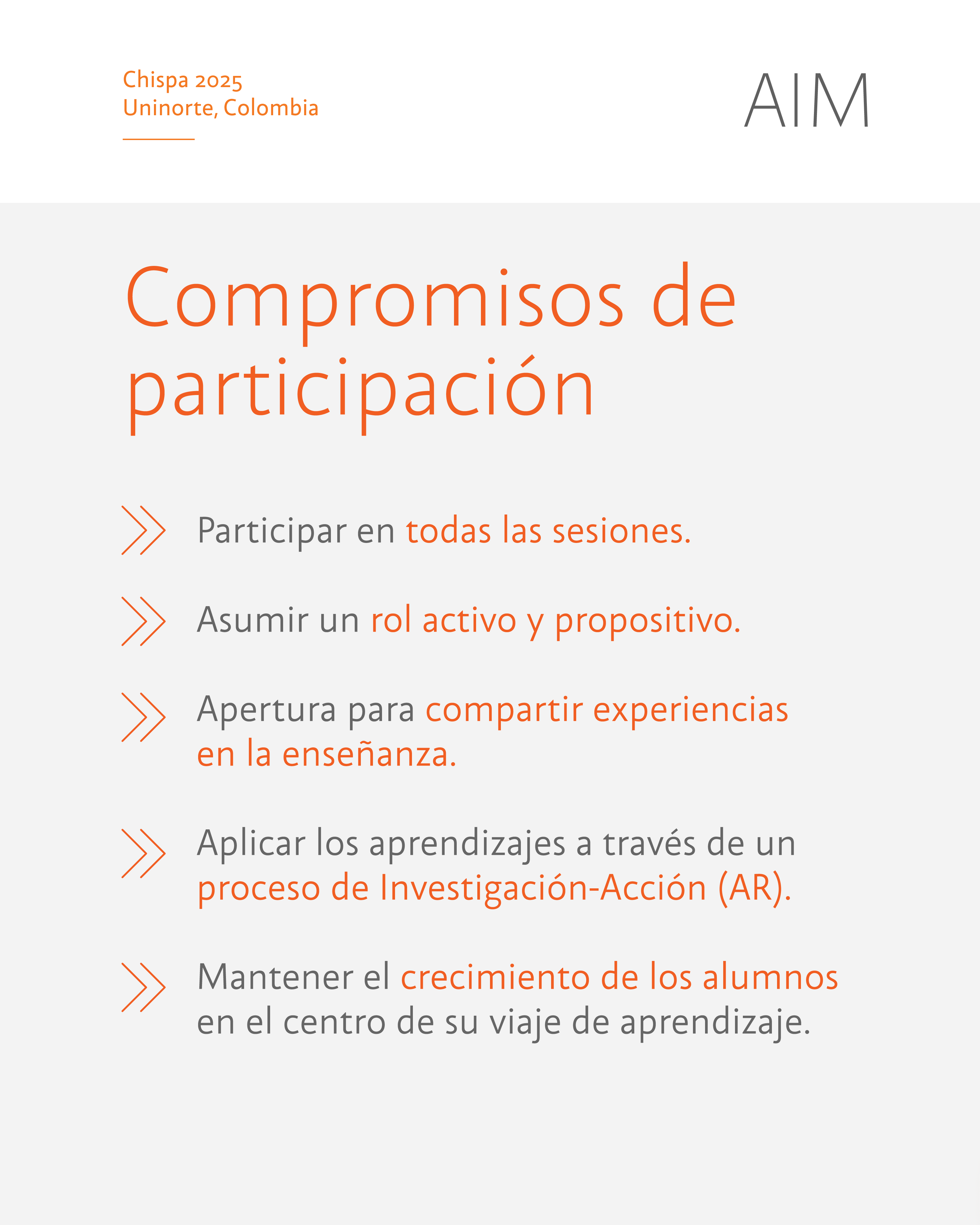 Es miembro activo de AIM, donde ha recorrido distintas etapas de formación: inició como Firebird, luego fue parte del grupo Alumni y actualmente se desempeña como coach pedagógico, acompañando a otros docentes en su crecimiento profesional. También fue becario del Global Leaders Institute (GLI), experiencia que fortaleció su visión educativa y sus capacidades en gestión cultural.