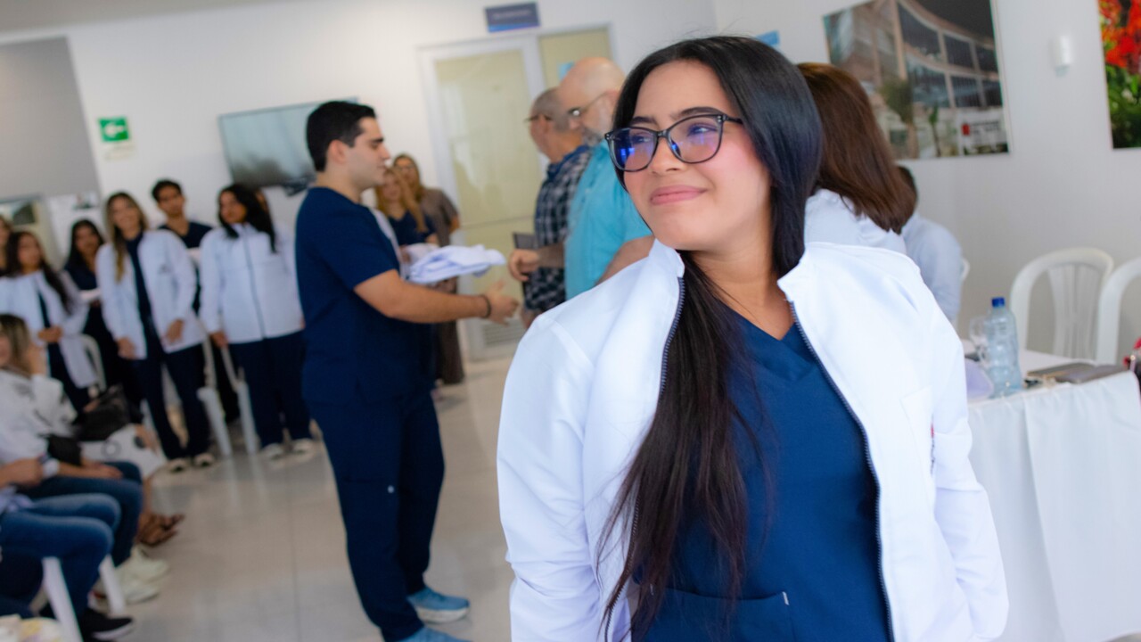 Un nuevo grupo de 24 estudiantes de sexto semestre inició su ciclo clínico tras recibir la bata blanca. El acto simboliza el paso de la formación teórica a la atención directa de pacientes.