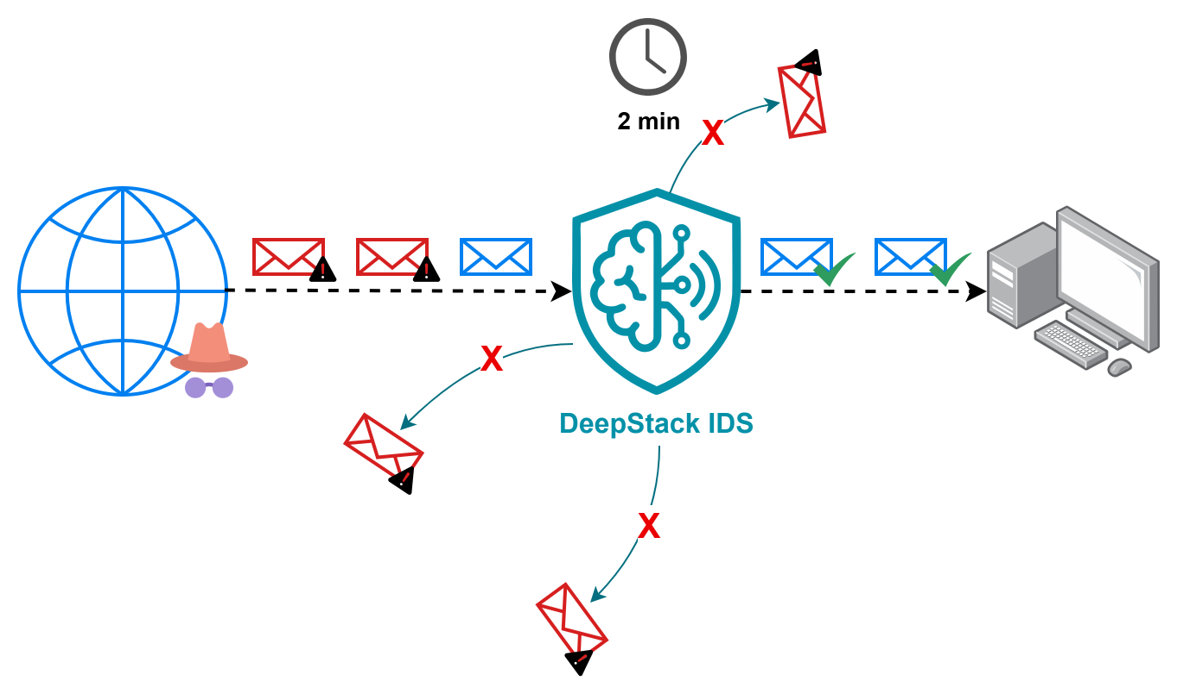 De esta manera, el proyecto busca desarrollar un software de acceso libre para la detección de ataques DDoS, que beneficiará principalmente a las pymes. Entre los principales resultados se destacan la definición y construcción de una arquitectura de stacking (apilamiento) de modelos de machine learning, compuesta por tres capas. Además, registra un 91 % de exactitud en la detección específica de ataques DDoS mediante un sistema de multiclasificación, y posee una interfaz de usuario desplegable en una infraestructura real de red de computadores.