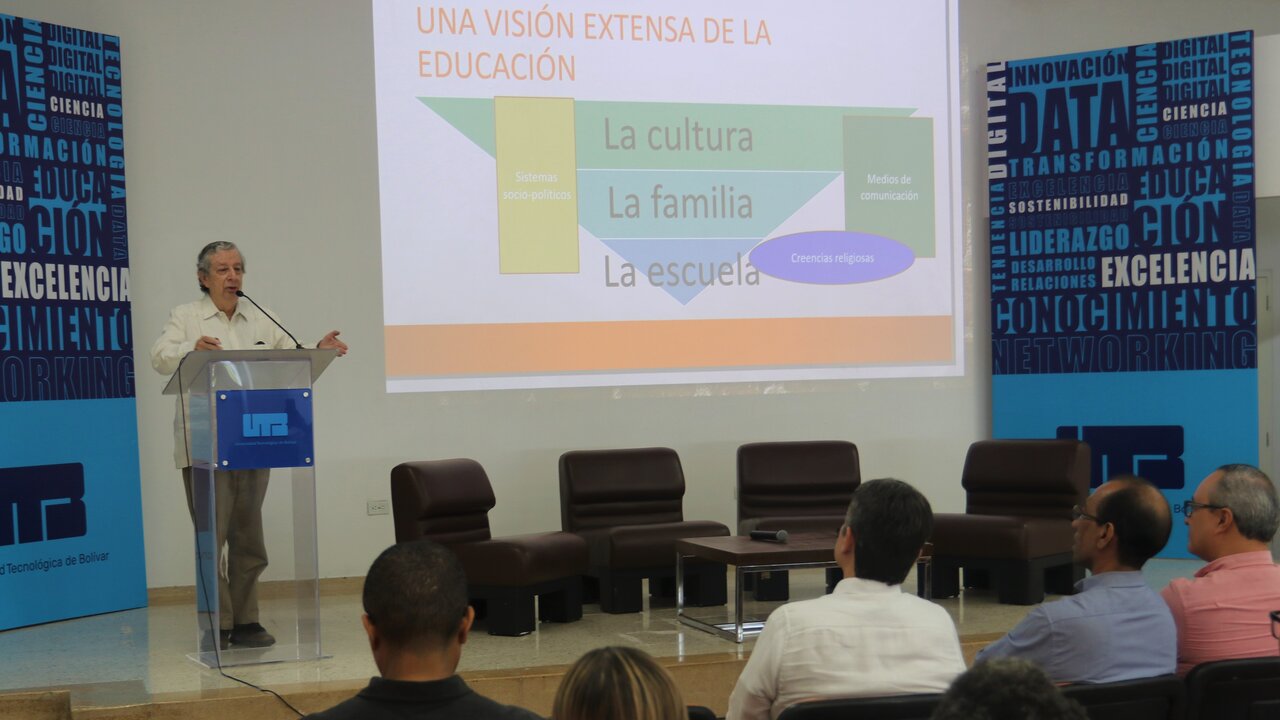 Alberto Roa, rector de la UTB, dio apertura al foro en el auditorio Jorge Taua, en Cartagena, enfatizando que la educación es el principal camino para el desarrollo del país, aunque "no se haya avanzado suficiente".
